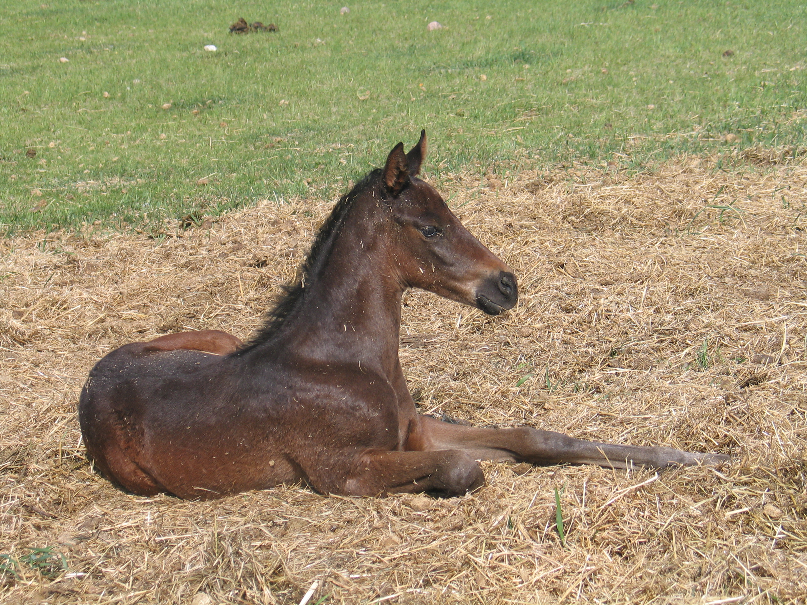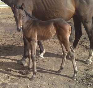 She had a dark bay colt by Thoroughbred stallion, Lanciano, May 2009. Lanciano was imported from Germany.